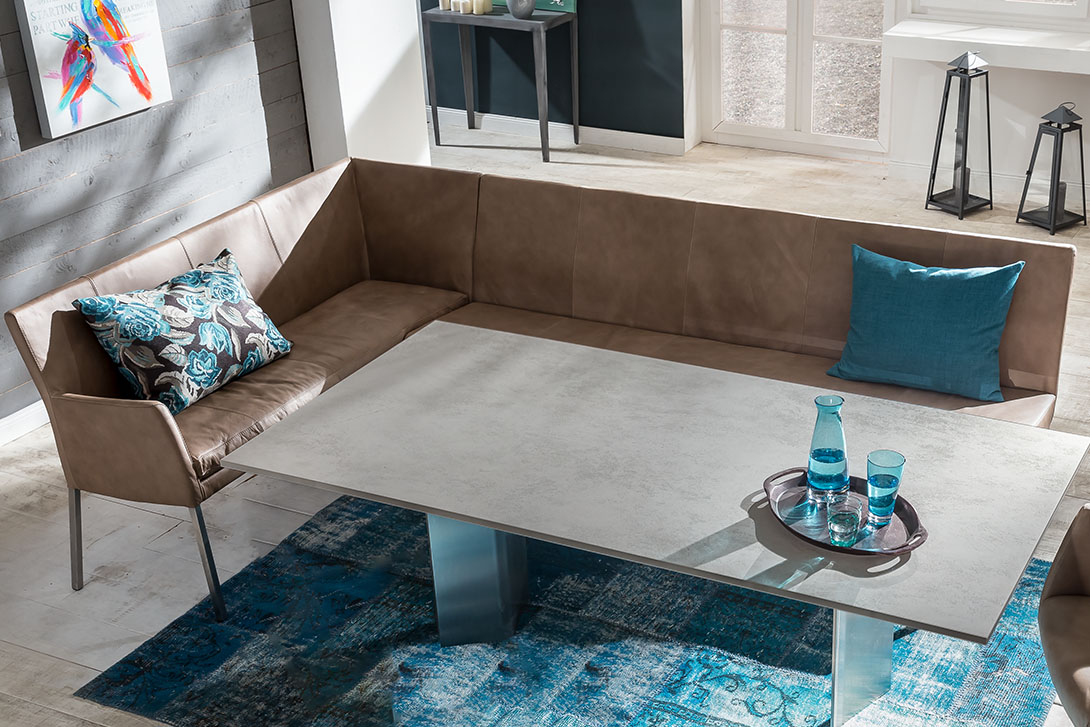 Zahlreiche optionale Bausteine erlauben es, sich Tisch und Stuhl ganz nach den eigenen Vorlieben zusammenzustellen. Zusammen mit einem Netzwerk aus Designern und Entwicklern, Schreinereien, Leder- und Stoffproduzenten und metallverarbeitenden Betrieben hat Lavida Innovationen wie die Moover Funktion auf den Möbelmarkt gebracht und damit besondere Alleinstellungsmerkmale für sich geschaffen. Die patentierte Moover Funktion ermöglicht bequemes Vor- und Zurückwippen.