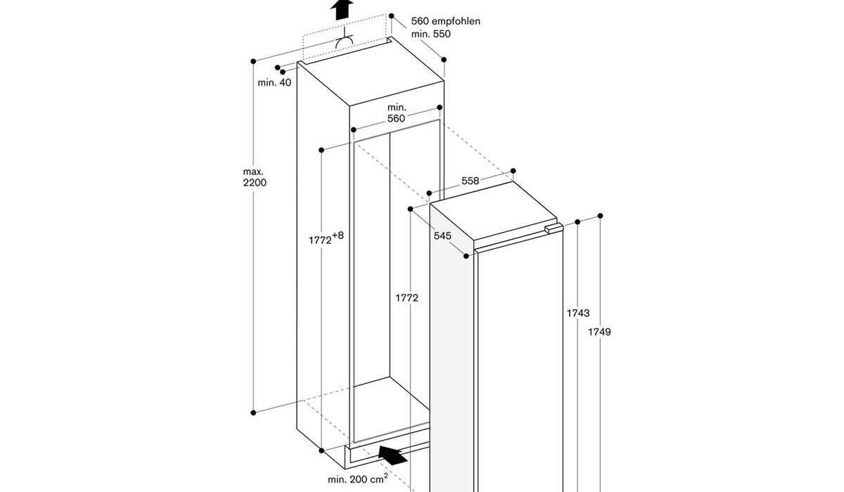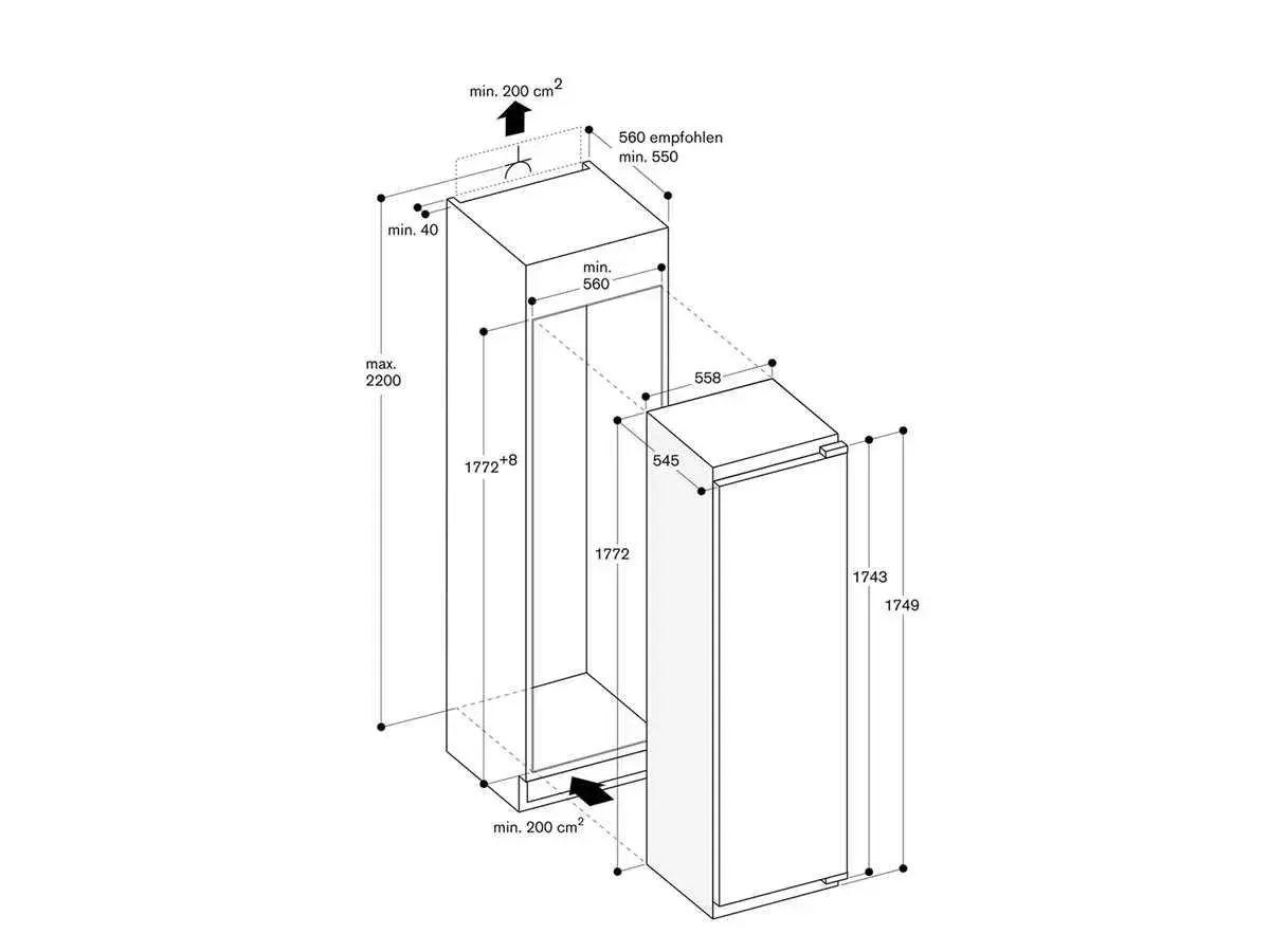 Temperatur verstellbar von +3 °C bis +8 °C.